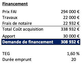 Nous avons obtenu un financement à hauteur de près de 309 000€, sur 20 ans.